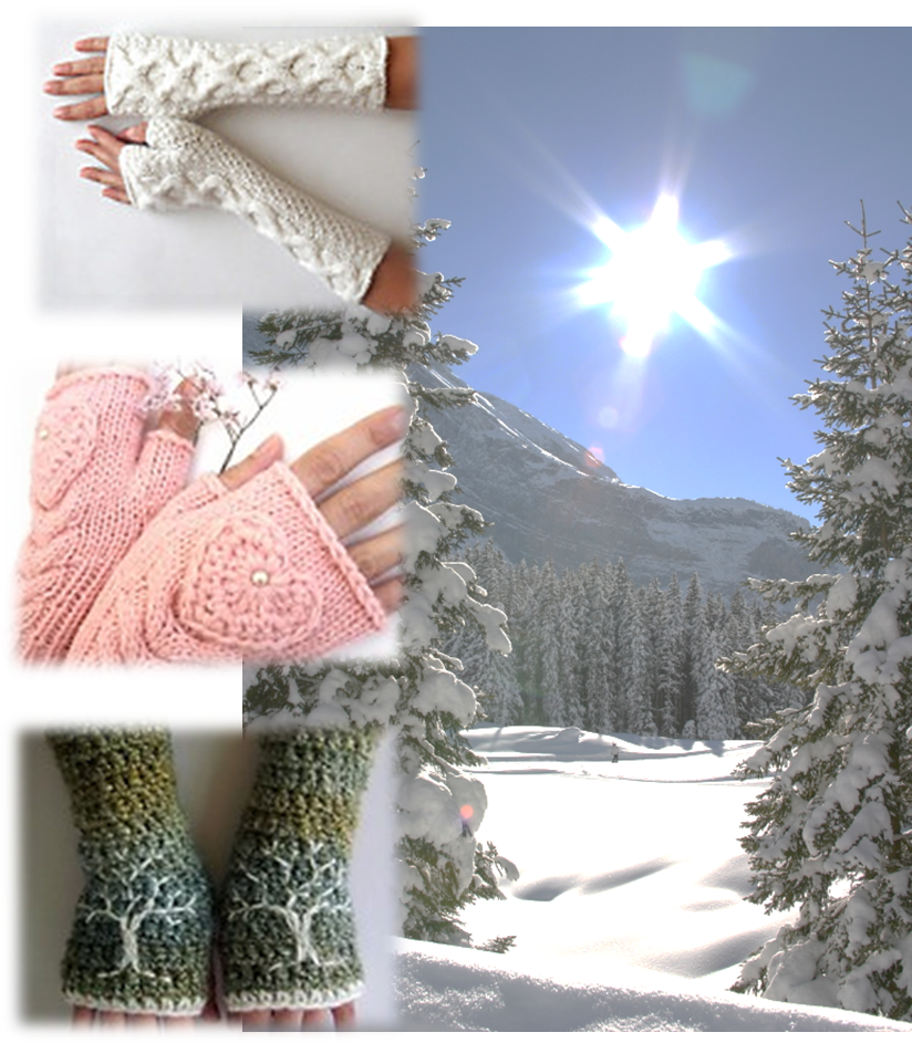 Soft Cashmere Fingerless Gloves , TENDER LOVE ,and Arm Warmers with Tree Design