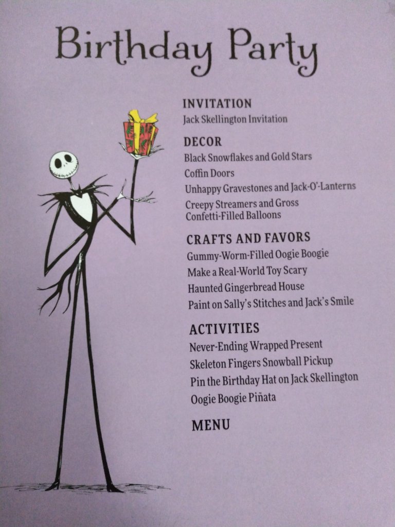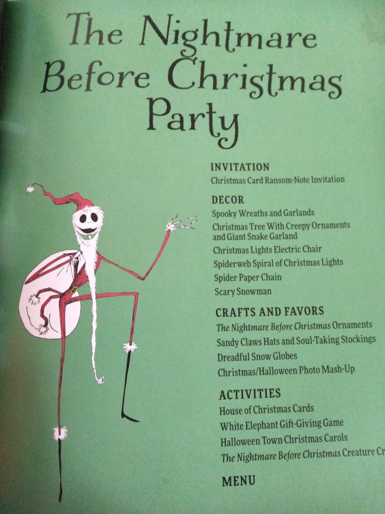 The Entertaining Guide is full of Pinterest Worthy projects [I won’t feature them here, because I can’t show you everything. If you decided to get the book, I’ll let you know where to find them]. Personally, I like the Halloween Countdown Clock (118) that got a lot of screen time during the musical number, Making Christmas. Like sticking an X-mas sign over it was enough ๐. Another standout to me was the Lock, Shock, and Barrel Paper Mรขchรฉ Masks (127), because these three trouble makers played a key role in kidnapping Sandy Claws and caused unnecessary trouble for Jack later in the movie. Plus, the number one tricker treaters in Halloween Town clearly have homemade costumes. So the masks make good decorations and photos booth props. I’m also a sucker for the Spooky Wreath and Garland (P 138), as well as, the Holiday Trees Portal Doors (P 180).