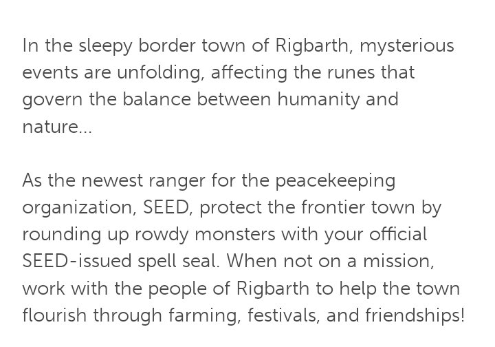 Overall, Rune Factory 5 is a harvest moon fantasy game that is a fun RPG games with Slice of Life objectives. I decided to write this post, because I googled different questions about a game that I have no history with. It was nice to step outside of my comfort gaming franchises and try something new. Plus, it seemed like a good idea at the time. The game is as mission centered or “go with the flow” as you want it to be, which makes it possible to go on adventures and master various skills.