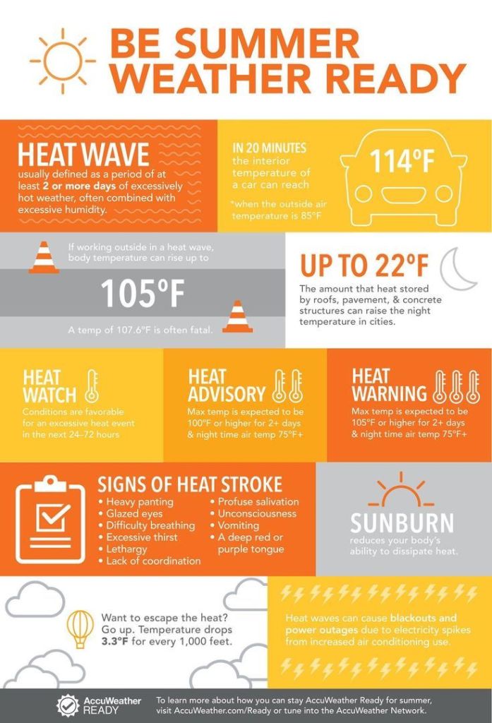 Some of us have jobs that make it difficult to stay indoors during a heat index. Not all occupations have seasonal appropriate uniform options. Heat injuries are dangerous. If you or someone you care for falls in that category, try to keep cold beverages and food accessible.