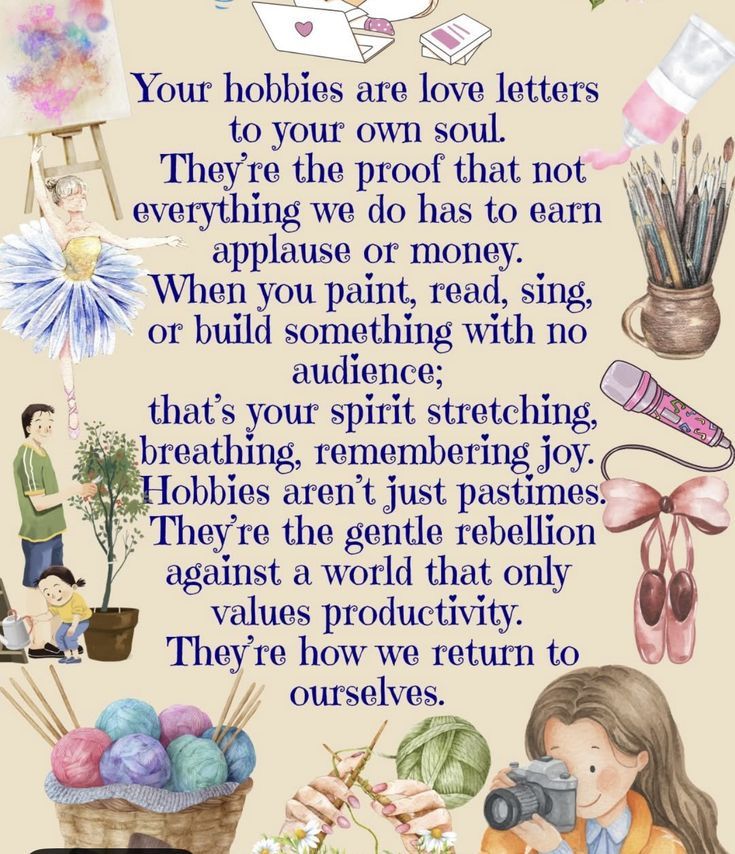 Is life feeling stagnant? Has doom scrolling taken up all your free time? It might be time to try new things or consider reviving old hobbies. Growing up, I recall when I stopped making time for activities that brought me joy. The things that stayed had practical uses. As adults, we pour a lot of our time and resources into others. There’s nothing wrong about being of service to others. Nor, having side hustle sustained by your hobbies. That doesn’t mean you can’t do things for you. Your joy is enough. Your renewal is enough. This week, I hope you commit to starting a new hobby. It’s not selfish to center yourself. Everything doesn’t have to be monetized.